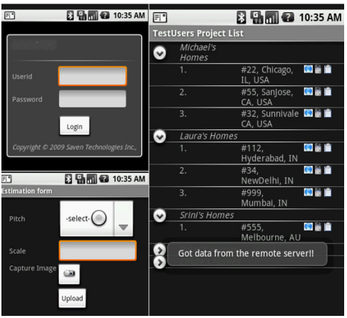 Tool provides assistance to house damage measurement system, uploads three data elements- pitch, scale and captured image, and transfers data to the estimation programs residing at a remote server, thereby helping claims workflow to determine the precise dimensions of a home’s damage details. Developed with open source tools: Android SDK 1.1_r1. This revolutionary application utilises advanced APIs of the SDK like android.