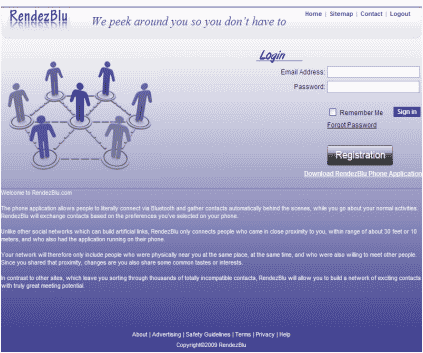 This application was built for, www.rendezblue.com. RendezBlu site is a proximity social network based on contacts, which one gathers via phone’s Bluetooth feature and later upload to rendezblu.com. The phone application allows people to literally connect via Bluetooth and gather contacts automatically behind the scenes, while they go about doing normal activities. RendezBlu will exchange contacts based on the preferences selected on users’ phone. Unlike other social networks which can build artificial links, RendezBlu only connects people who came in close proximity to user, within range of about 30 feet or 10 meters, and who also had the application running on their phone.