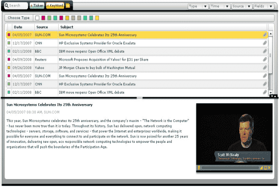 - Displays visual marks for various news types such as and user has the flexibility to filter & sort news items with a single mouse click.